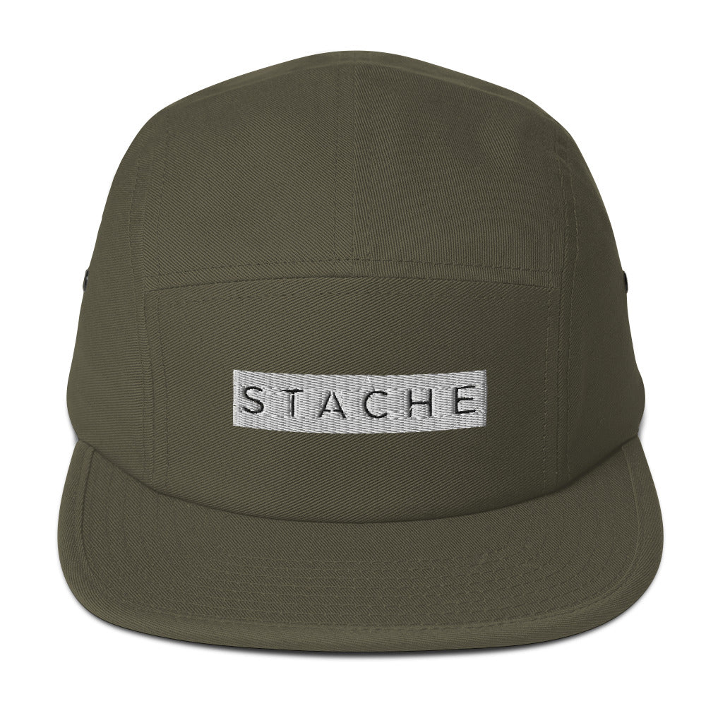 This 5-panel camper style cap has a low profile and nylon strap clip closure. Comfortable and classic! Complete with the embroidered Stache white box logo, this hat is sure to complement any style.