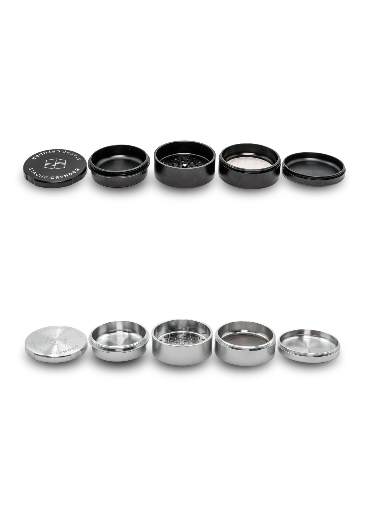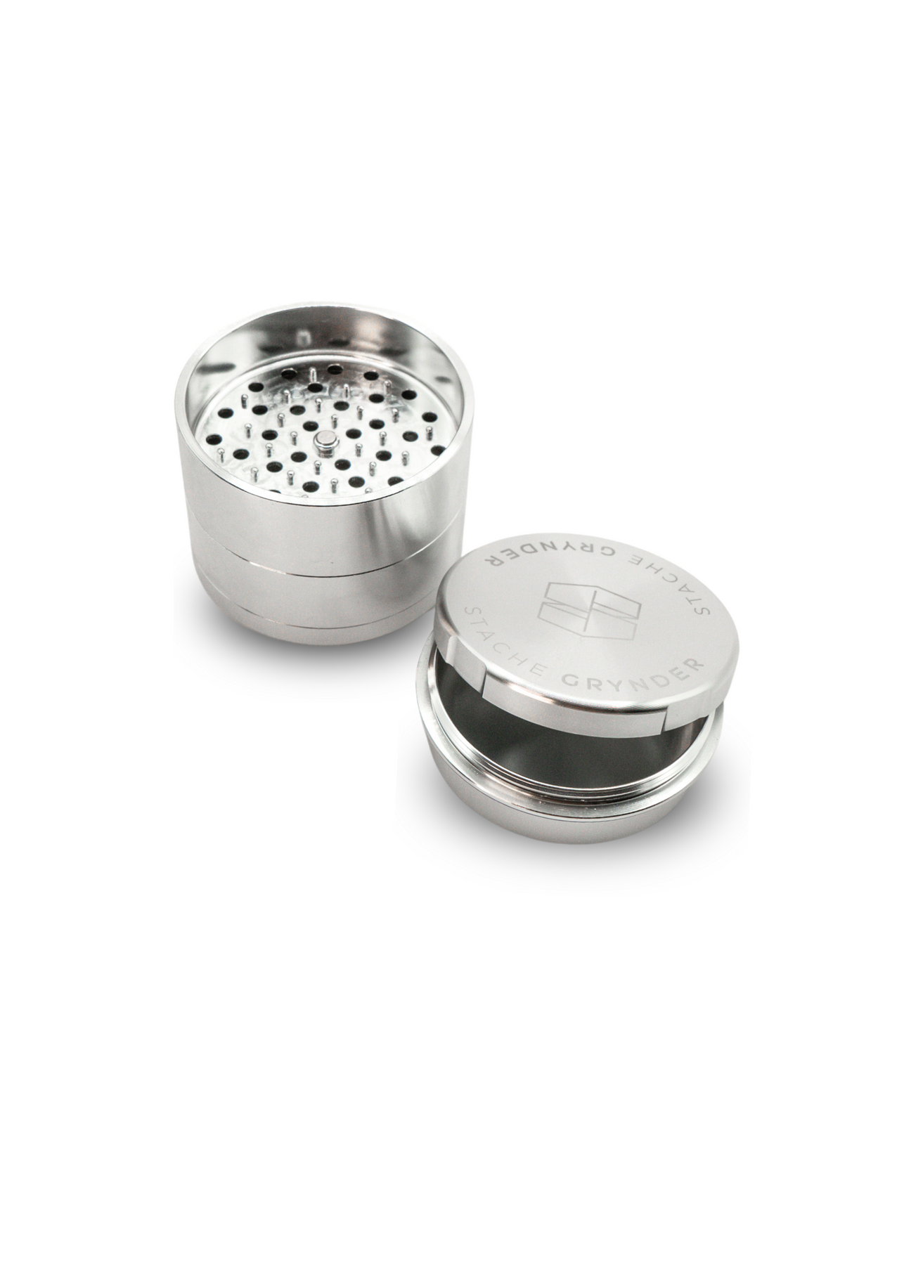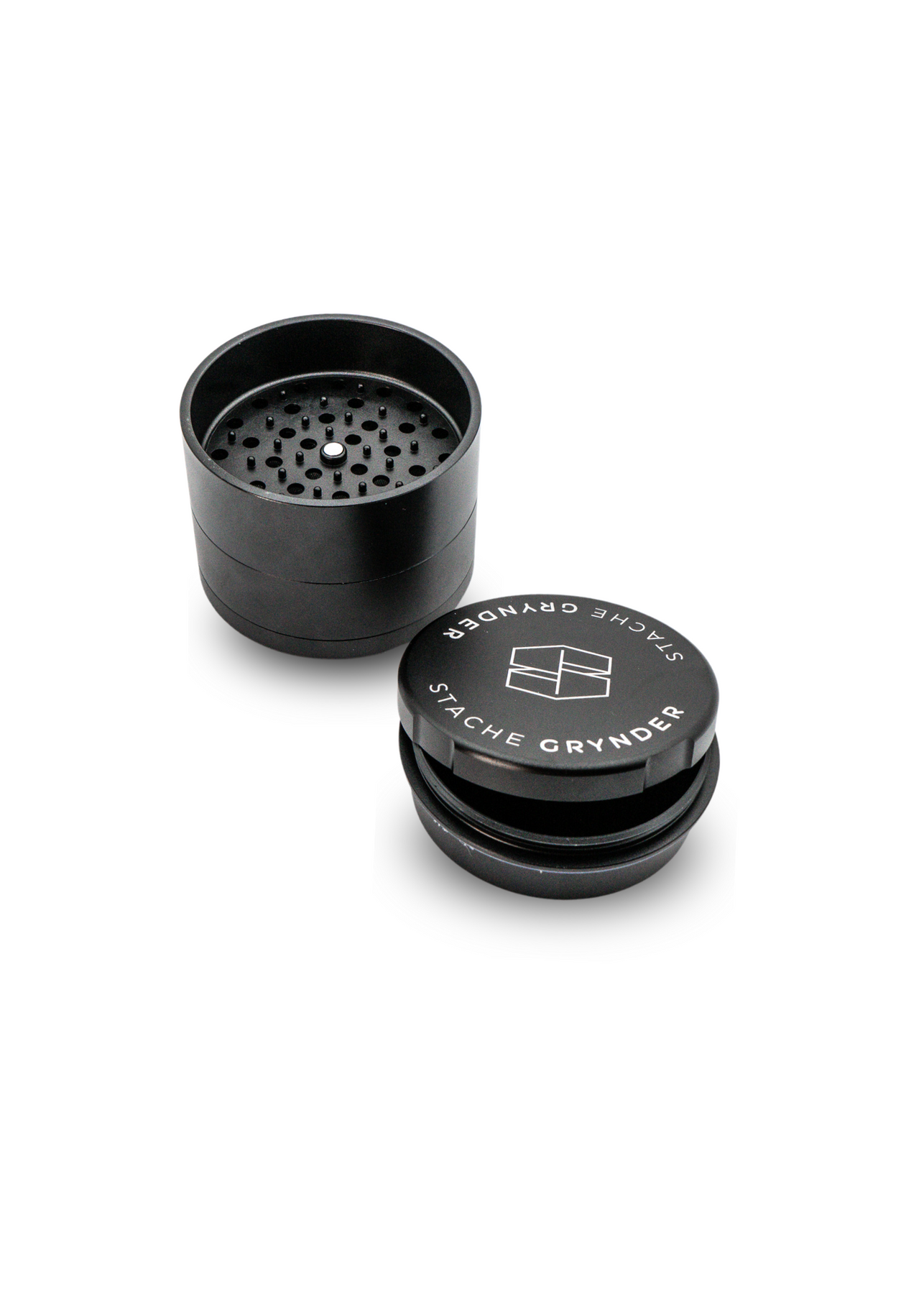 The Stache Grynder is made to be the last metal herb grinder you will ever need. The Grynder is rich with innovative changes made with the average consumer in mind. Dry herbs today tend to be richer in terpenes and denser in structure, much different from a century ago when the first herb grinders were popularized. Old designs cause friction and buildup of various plant materials, leading to a loss in quality of the dry herb before it can be consumed. The Stache Grynder is designed to mitigate all of these issues with its innovative design that features: